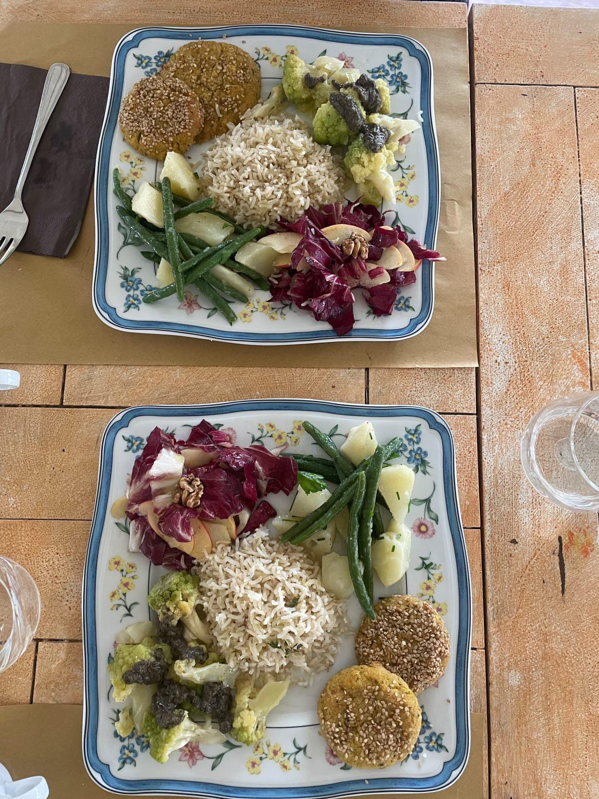 Difficile trovare un menù con diverse proposte contemporaneamente perché non siamo un ristorante, e non vogliamo neanche esserlo! Ci piace invece fare la spesa frequentemente e proporre i piatti secondo la stagionalità e come si dice ‘a sentimento dell’azdora’ proprio come farebbe una padrona di casa, in Romagna dicasi l’azdora: pochi piatti ma fatti in casa: dal pane alla piadina, alla scelta delle farine locali, dalla pasta fatta in casa con uova biologiche, dalle verdure rigorosamente di stagione, fresche provenienti dal contadino. Non mancano i piatti della tradizione, ma d’estate quanto le verdure sono le protagoniste è occasione per fantasticare con ricetti di piatti vegetariani. E oggi che le esigenze alimentari sono all’ordine del giorno, vuoi per motivi di salute, vuoi per allergie o intolleranze, sarà sempre l’occasione per preparare qualche ricetta personalizzata.